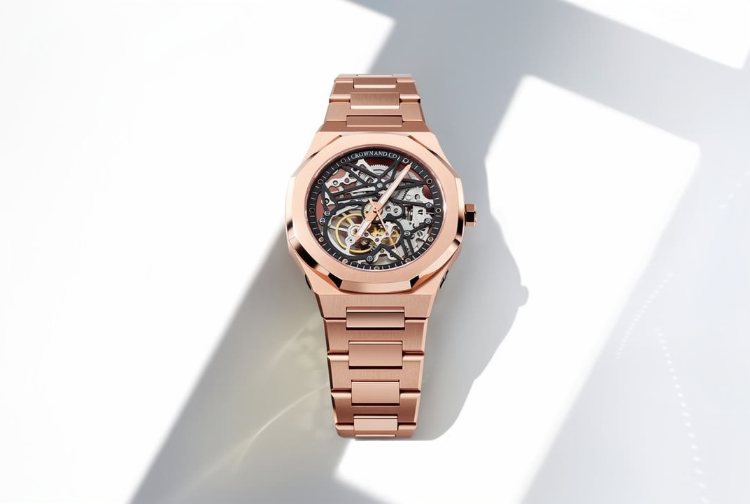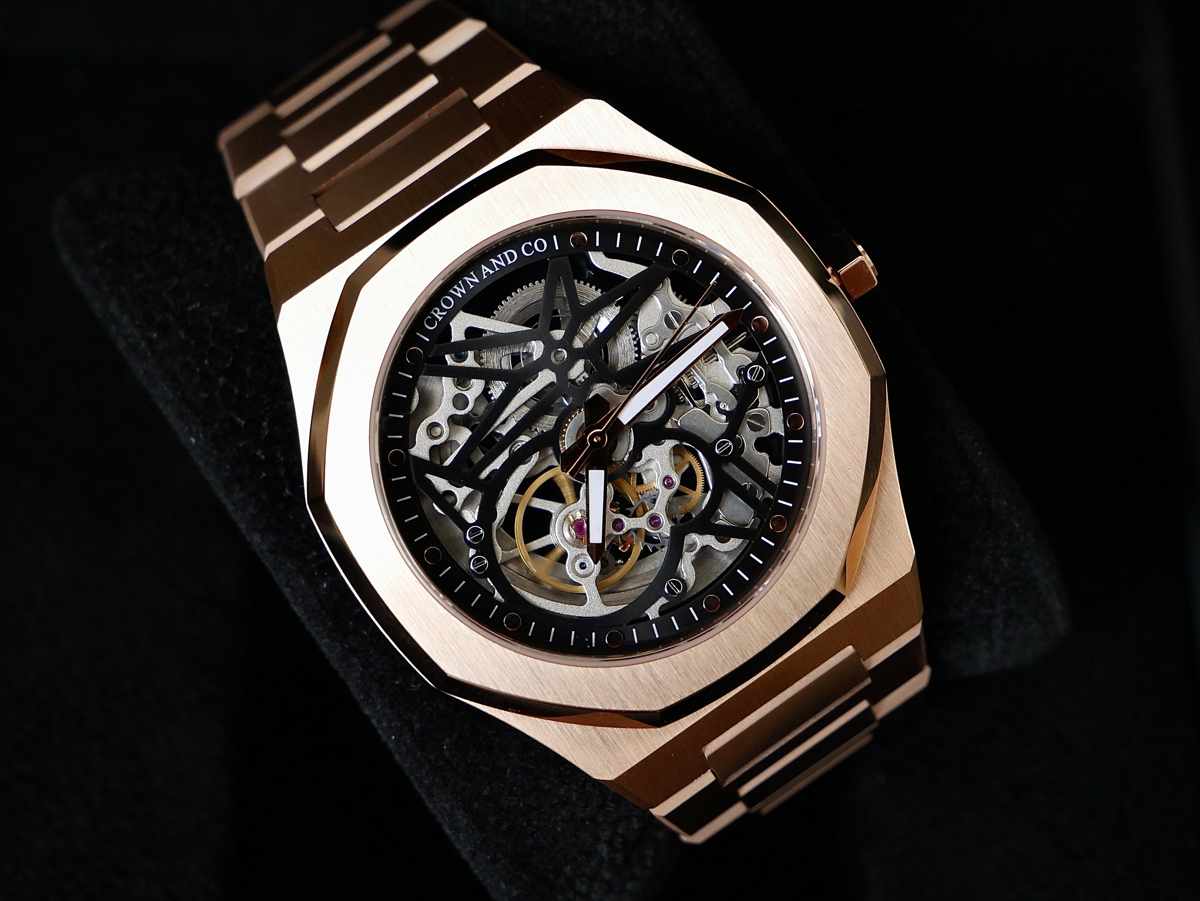 OCHO SERIES ROSE GOLD SKELETONS. discover the white and black dial.
